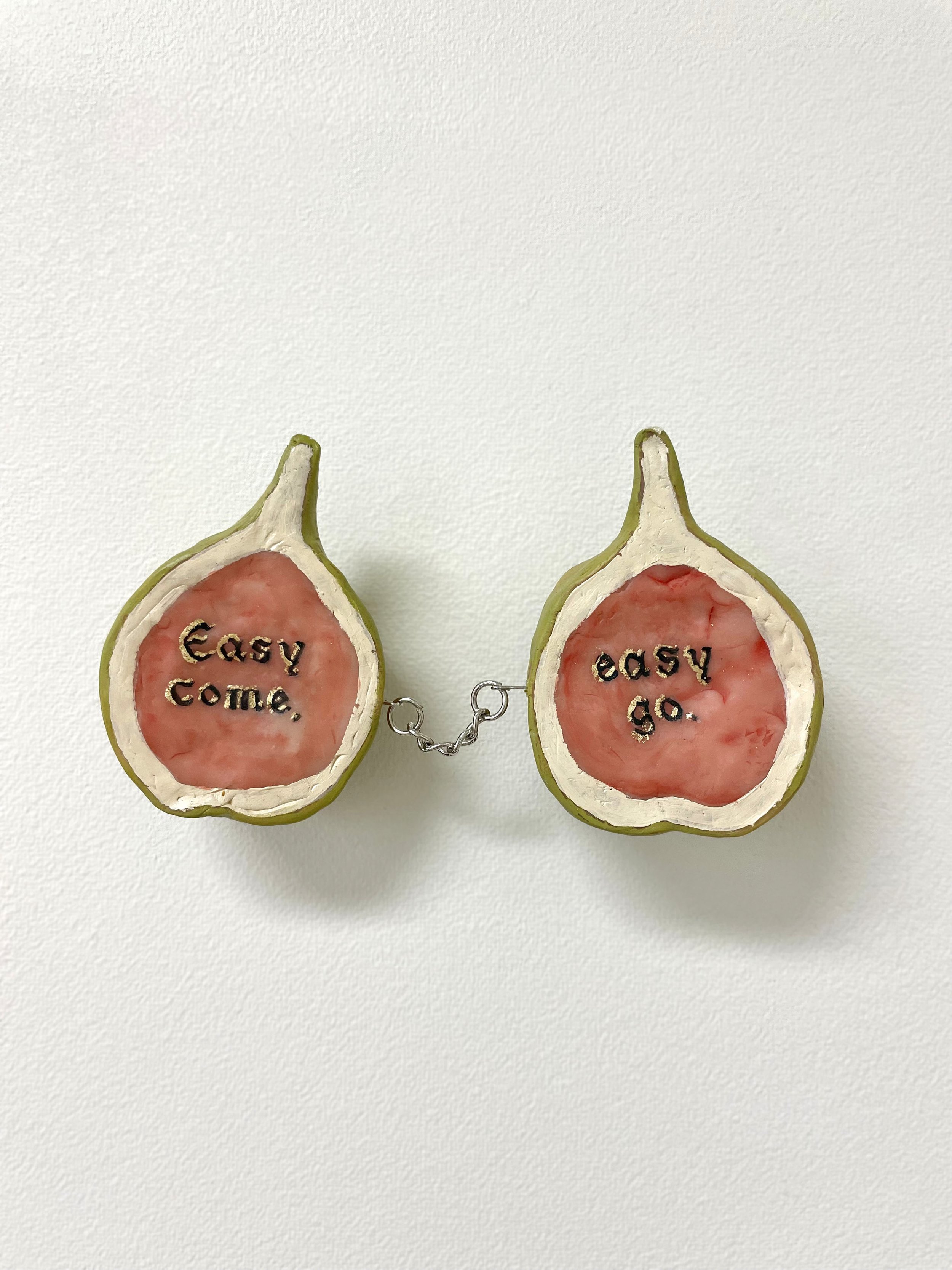 2024, Acrylic, gold leaf and chain on polymer clay,